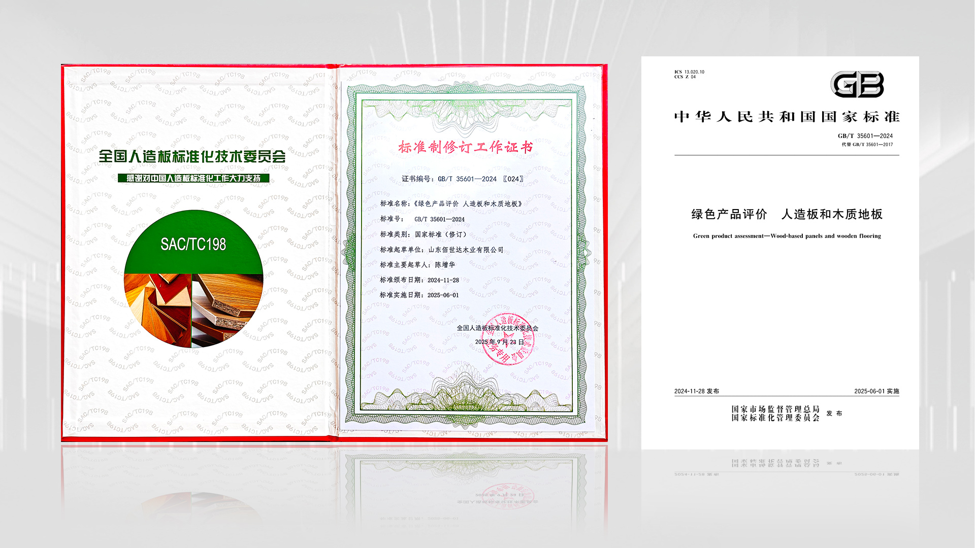 此次大会汇聚了全国林产品各领域的顶尖专家与行业领袖,共同聚焦行业标准化变革。会上,重点解读了GB18580—2025《室内装饰装修材料人造板及其制品中甲醛释放限量》、GB/T34722—2025《浸渍胶膜纸饰面细木工板和胶合板》以及GB/T35601—2024《绿色产品评价 人造板和木质地板》等一系列重要国家标准。其中,在《绿色产品评价 人造板和木质地板》(标准号:GB/T35601—2024)的修订过程中,佰世达集团深度参与,贡献卓著,因此荣获了荣誉证书。